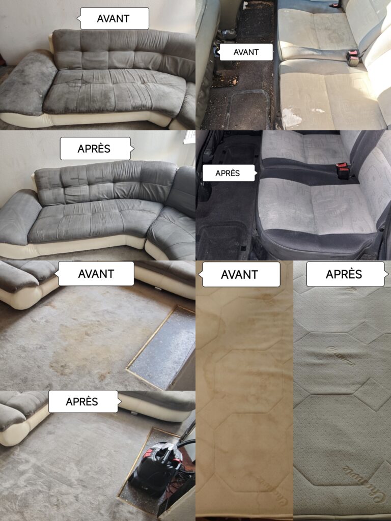 Nettoyage de canapé, tapis et matelas à domicile : grâce à la méthode d’injection-extraction, nos agents de nettoyage éliminent efficacement les taches, les acariens et les mauvaises odeurs, tout en garantissant un séchage rapide.